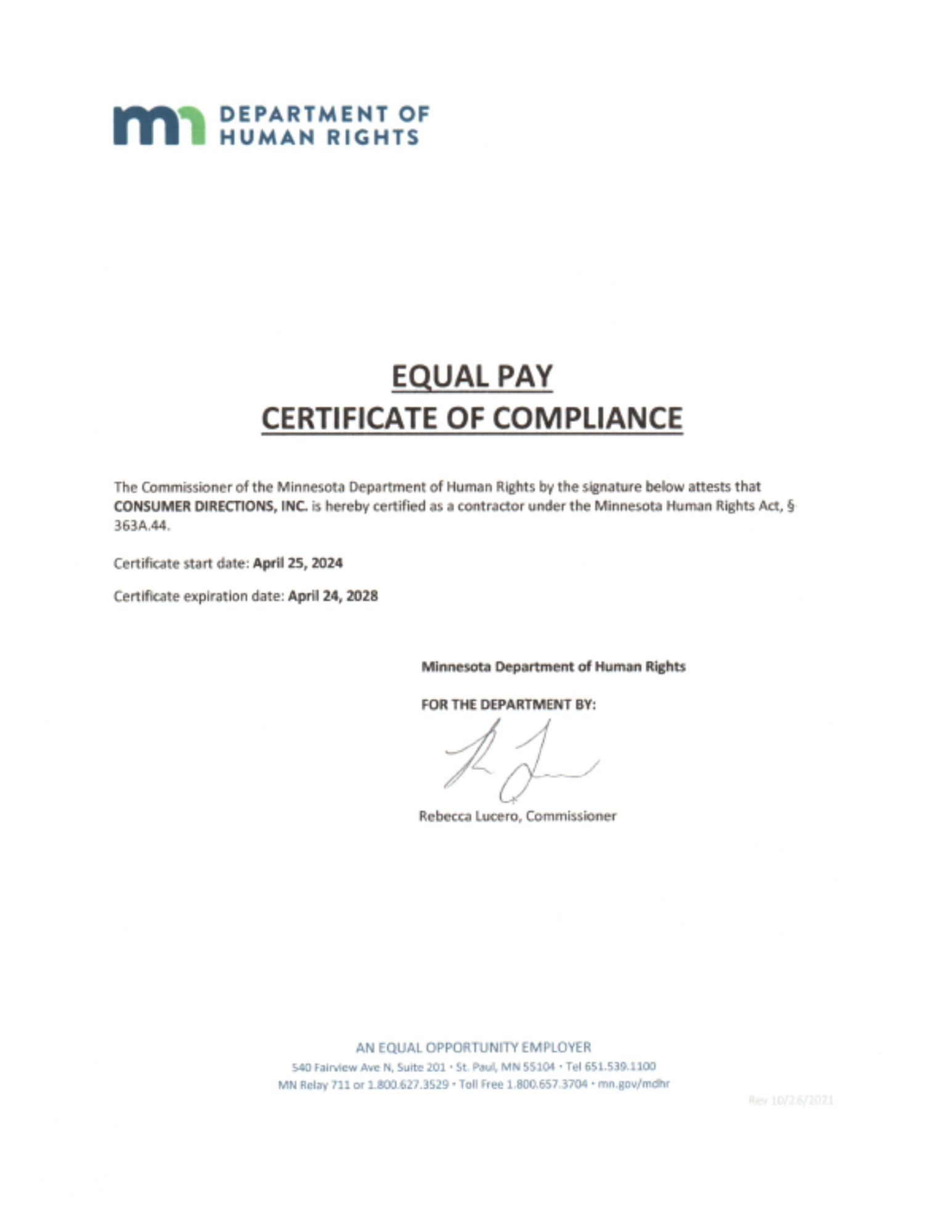 Equal Pay Certificate of Compliance